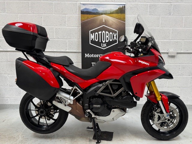 Ducati Multistrada 1200 S Touring, 2010 (60) reg, Racing Red, 25028 miles (clock shows 14852 miles as the unit was replaced under warranty by Italia Moto at 10176 miles on 26/03/2016, fully documented with invoice), original owners pack including spare key, manuals and stamped service book (9 services and invoices), Belt service carried out at 13754 miles in July 2025 (actual 23930 miles), MOT until August 2026, recent Michelin Road 6 tyres, remote keyless start ignition, this is the ‘S Touring’ model so comes with 3 box coloured matched luggage, integrated heated grips and centre stand, 4 rider modes – Sport, Touring, Urban and Enduro with each the engine’s output and the way it is delivered are changed plus traction control and ABS parameters, electronically adjustable Öhlins suspension (DES – Ducati Electronic Suspension), this bike is in superb condition for the age and mileage and will not disappoint. Price includes a 3 MONTH WARRANTY plus roadside assistance, full HPI check, DVLA registration. ULEZ (LONDON EMISSION ZONE) COMPLIANT, GUARANTEED HPI CLEAR. We also accept most major Credit and Debit cards and organise nationwide delivery. To ensure the bike is available to view please CALL AHEAD and then drop by to check out the bike. PLEASE CALL/EMAIL/TEXT/WHATSAPP US TO ARRANGE A TIME TO VISIT. Check out motobox.co.uk for all contact information.