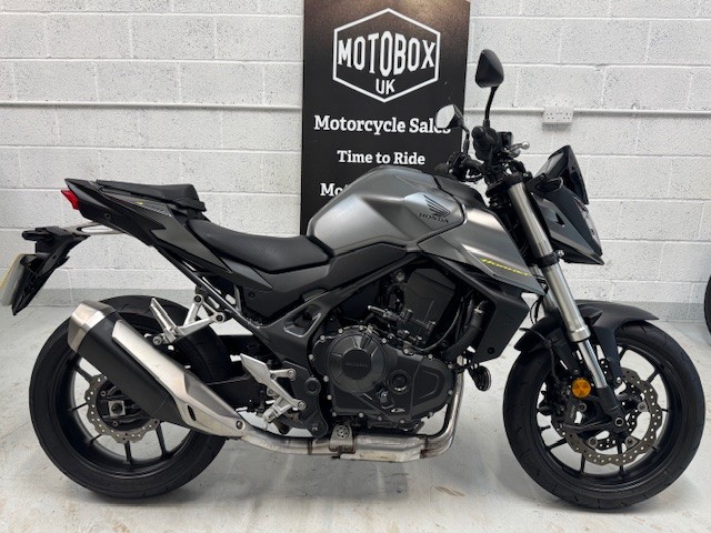 Honda CB750 A-P Hornet, 2023 (23) reg, Matte Iridium Grey Metallic, 4333 miles, one owner, original owners pack including spare key, manual, service book (2 service stamps from the supplying dealer) plus will be serviced and MOT’d for the new owner. This is a great bike for new or experienced riders, comes with full colour TFT screen, switchable and customisable rider modes and smartphone connectivity, a couple of small marks on the right hand cowl. 3 Month Warranty included, full HPI check, DVLA registration. ULEZ (LONDON EMISSION ZONE) COMPLIANT, GUARANTEED HPI CLEAR. There is a Finance Calculator at the bottom of the advert provided by Zuto. We also accept most major Credit and Debit cards and organise nationwide delivery. To ensure the bike is available to view please CALL AHEAD and then drop by to check out the bike. PLEASE CALL/EMAIL/TEXT/WHATSAPP US TO ARRANGE A TIME TO VISIT. Check out motobox.co.uk for all contact information.