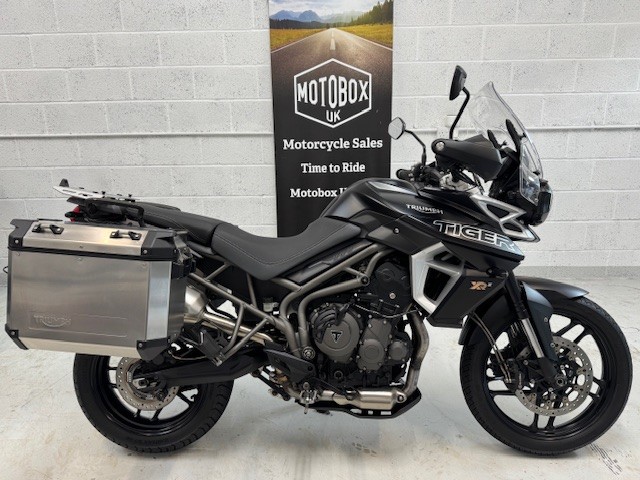 Triumph Tiger 800 XRx , 2018 (18) reg, Jet Black Matt metallic, 27850 miles, original owners pack with spare key, manual, Datatag security tag/certificate, service book (7 service stamps, 6 main dealer, 1 independent, including invoices, major 24k mile service carried out by Destination Triumph at 25744 miles), MOT April 2026 so will come with a fresh MOT, excellent Bridgestone Battlax BT46R tyres, as standard the XRx comes equipped with a full-colour TFT instrument panel, cruise control, riding modes, and ride-by-wire throttle, this bike has the optional integrated heated grips plus handguards, Triumph Arrow titanium slip on exhaust, Triumph Comfort Seats for rider and pillion, Triumph Expedition aluminium panniers, Givi top plate and R&G rear bobbins. This bike has been looked after both cosmetically and mechanically and offers great value for its new owner, 3 Month Warranty included, full HPI check, DVLA registration. ULEZ (LONDON EMISSION ZONE) COMPLIANT, GUARANTEED HPI CLEAR. There is a Finance Calculator at the bottom of the advert provided by Zuto. We also accept most major Credit and Debit cards and organise nationwide delivery. To ensure the bike is available to view please CALL AHEAD and then drop by to check out the bike. PLEASE CALL/EMAIL/TEXT/WHATSAPP US TO ARRANGE A TIME TO VISIT. Check out motobox.co.uk for all contact information.